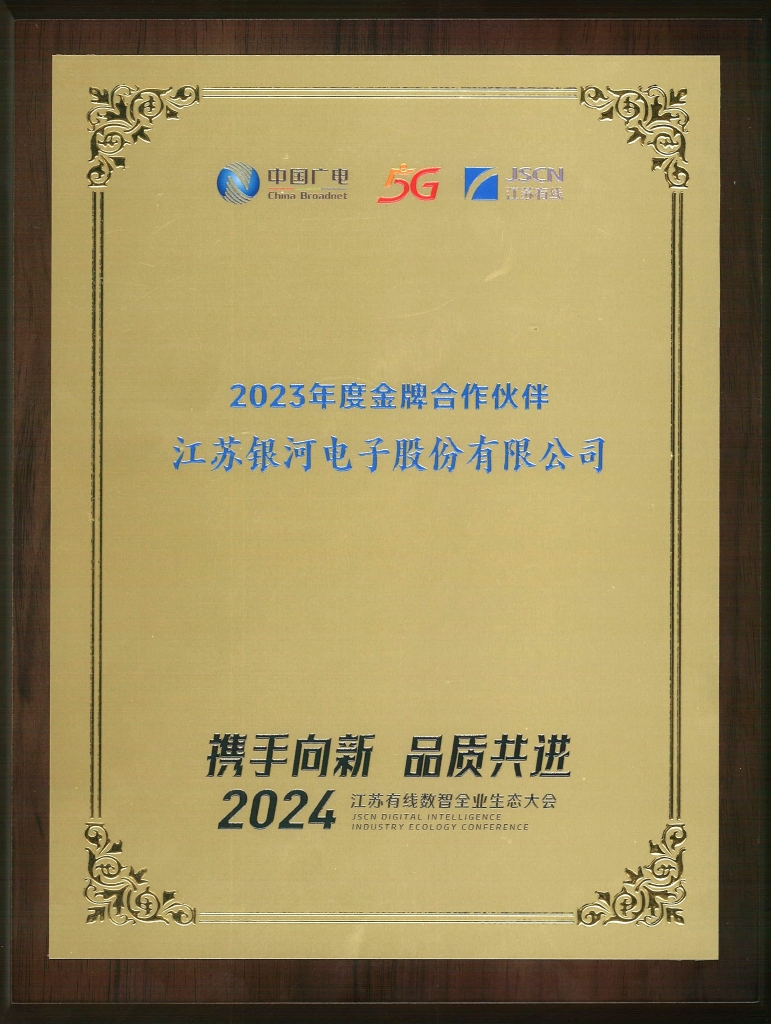 8月21日下午,以“攜手向‘新’ 品‘質(zhì)’共進(jìn)”為主題的2024江蘇有線數(shù)智全業(yè)生態(tài)大會在寧舉辦,銀河電子作為我國數(shù)字電視智能終端設(shè)備專業(yè)提供商受邀參會。大會期間舉行了“2023年度金牌合作伙伴”頒獎儀式,銀河電子憑借優(yōu)質(zhì)的服務(wù)、可靠的品質(zhì)、及時的交付能力,被授予2023年度江蘇有線金牌合作伙伴。